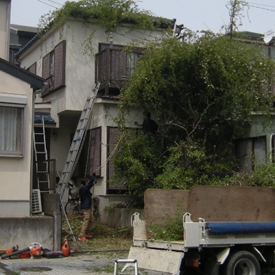 庭木の伐採、立ち木の枝落とし、草刈り、完全抜根を致します。